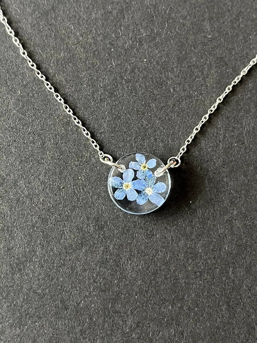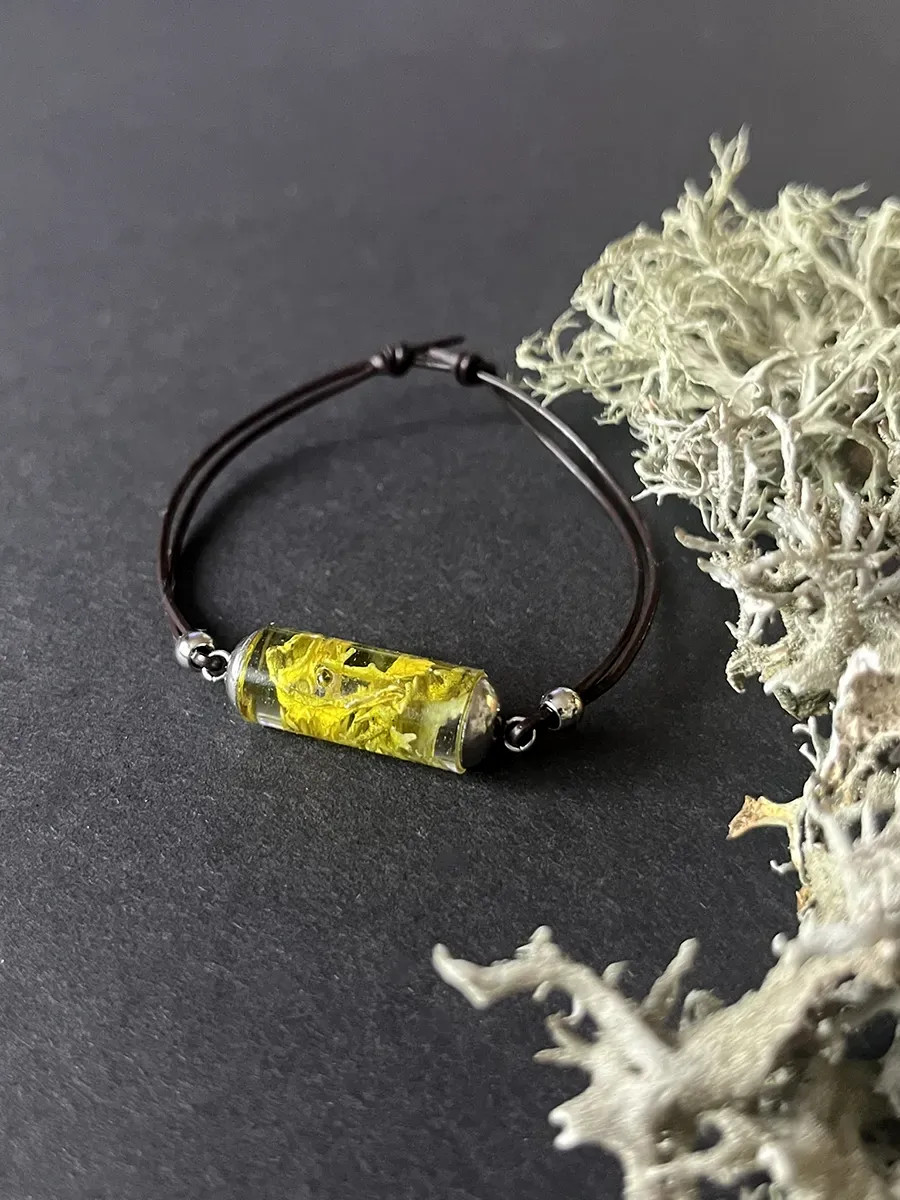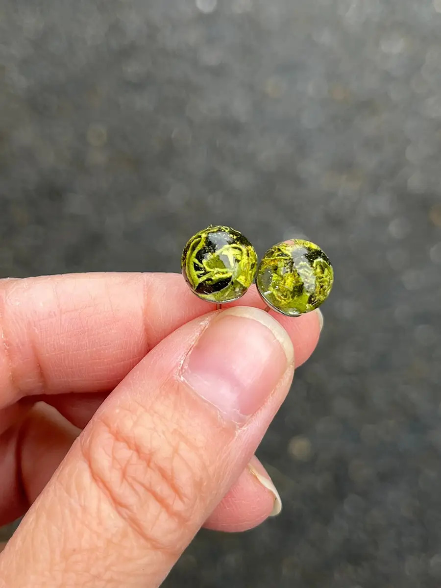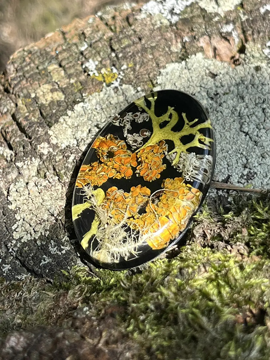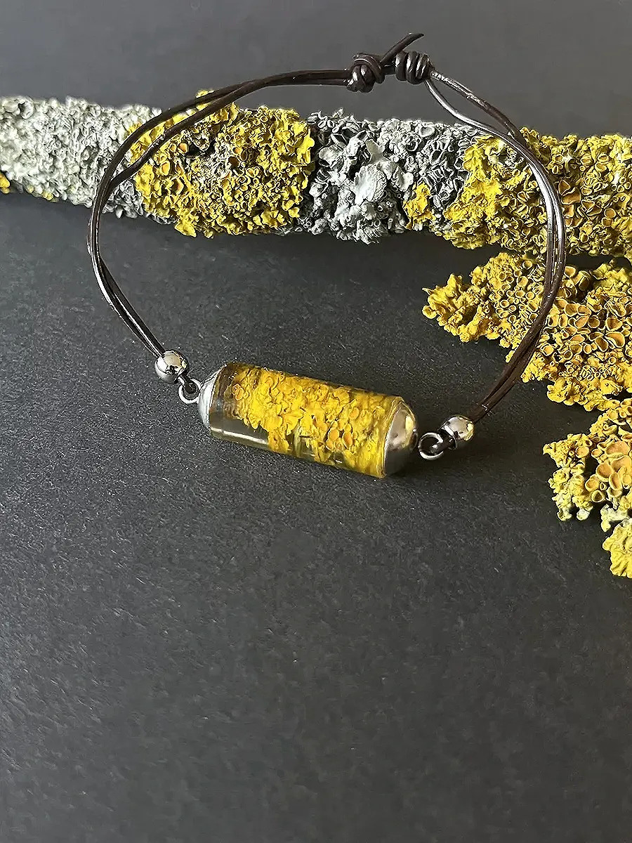 Všechny šperky vznikají přímo pod mýma rukama — od nápadu, přes sběr přírodních materiálů až po finální zalití křišťálovou pryskyřicí. Každý kousek, který u mě najdete, je originální a unikátní. Do každého kusu vkládám jemné květy, lístky, mechy, lišejníky nebo jiné přírodní fragmenty, které zachycují okamžik přírody v čase. Výsledkem je malý svět v průzračné pryskyřici — nositelný, osobitý a vždy s duší přírody.