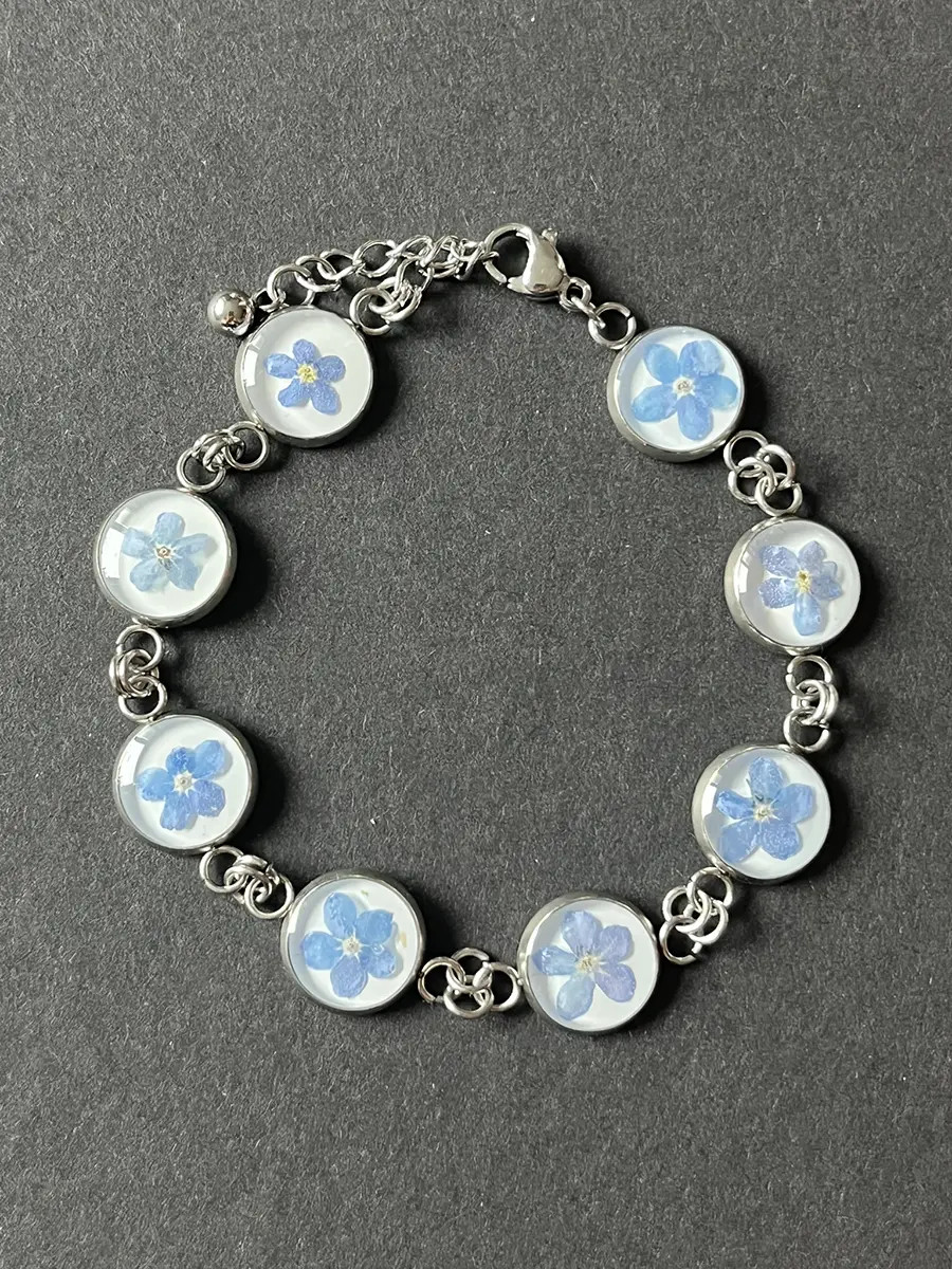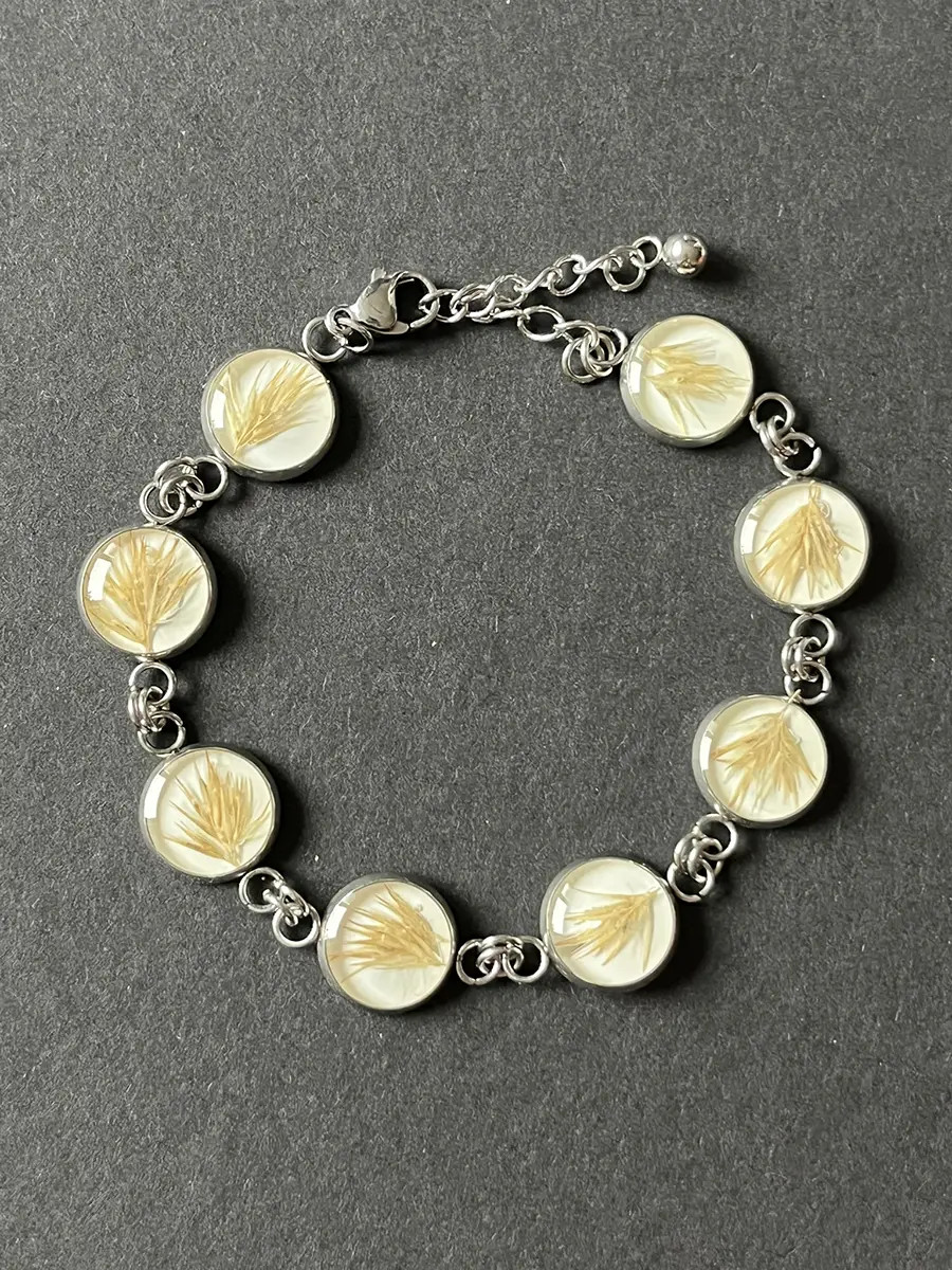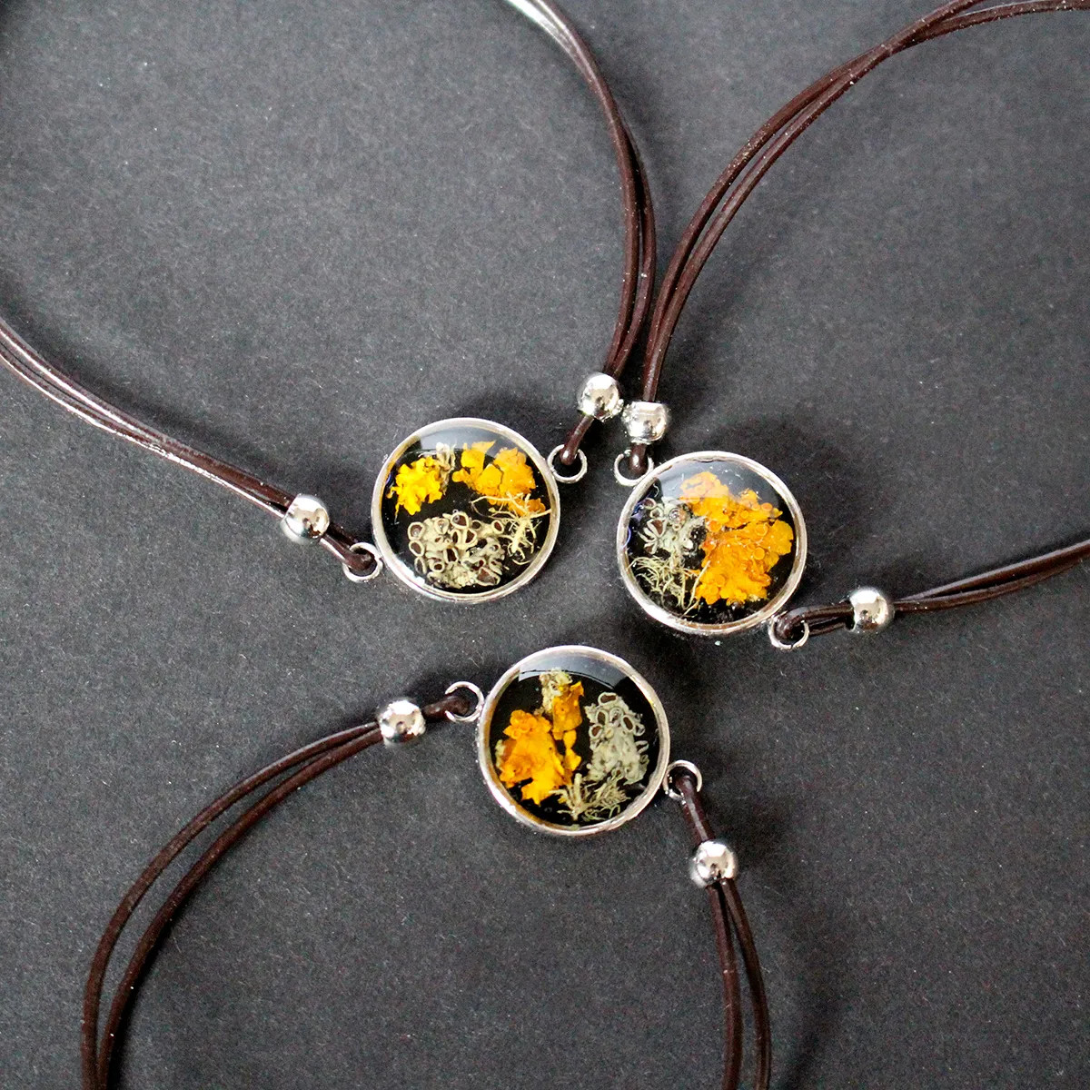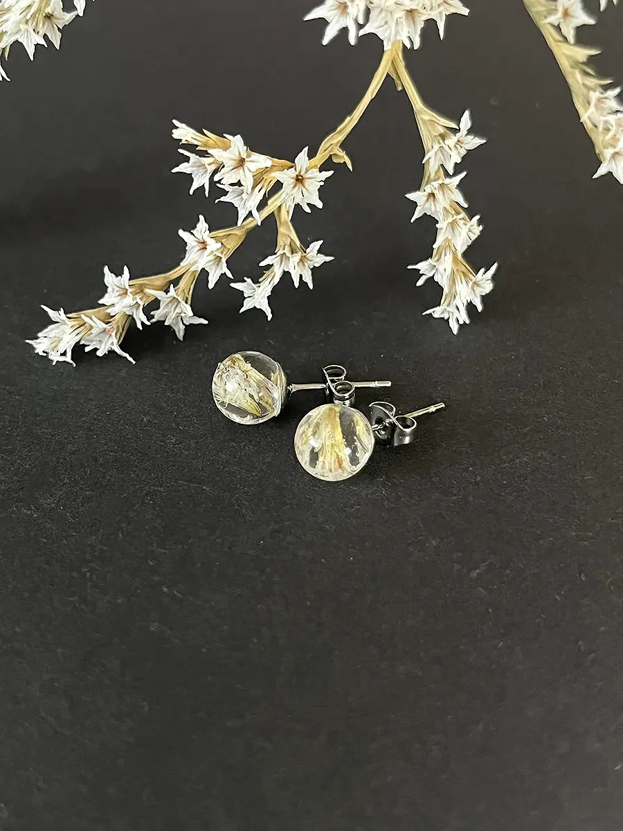 Všechny šperky vznikají přímo pod mýma rukama — od nápadu, přes sběr přírodních materiálů až po finální zalití křišťálovou pryskyřicí. Každý kousek, který u mě najdete, je originální a unikátní. Do každého kusu vkládám jemné květy, lístky, mechy, lišejníky nebo jiné přírodní fragmenty, které zachycují okamžik přírody v čase. Výsledkem je malý svět v průzračné pryskyřici — nositelný, osobitý a vždy s duší přírody.