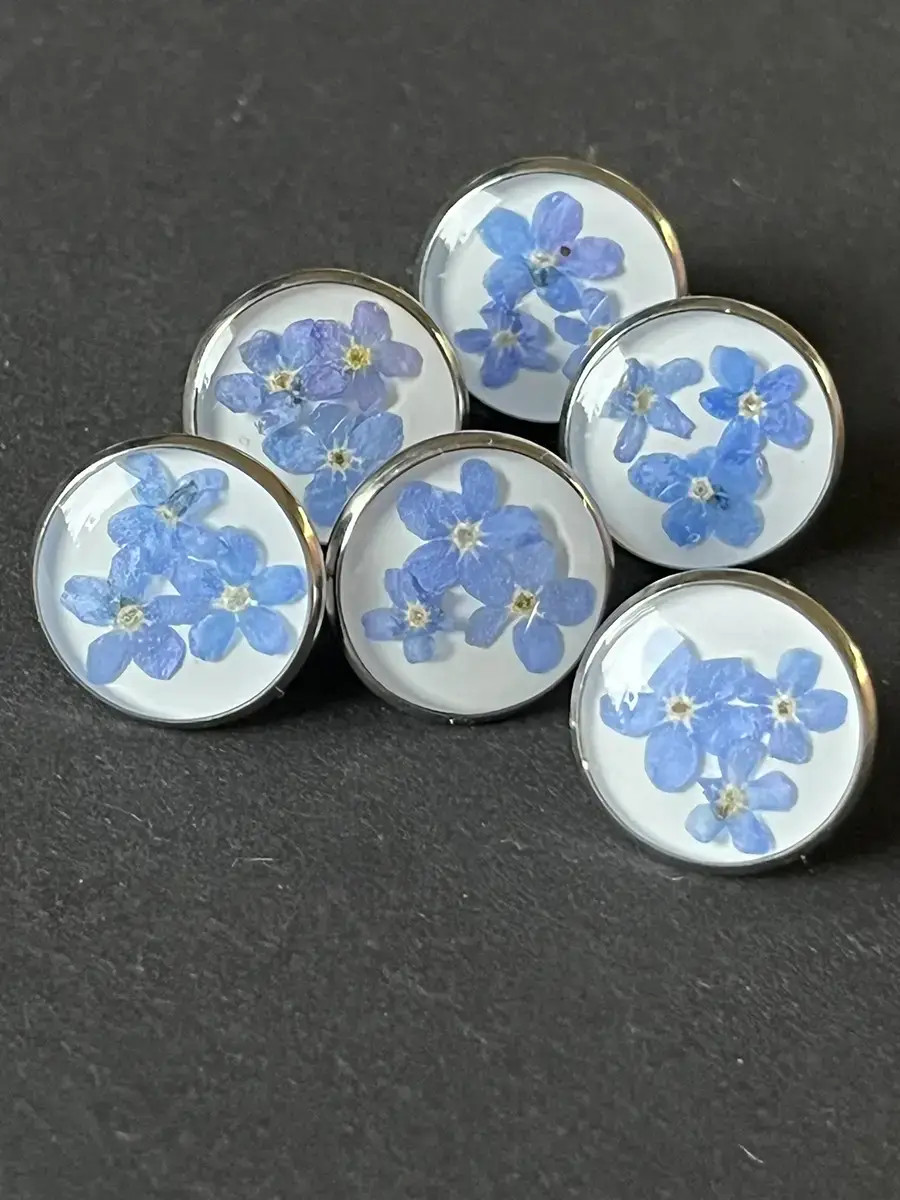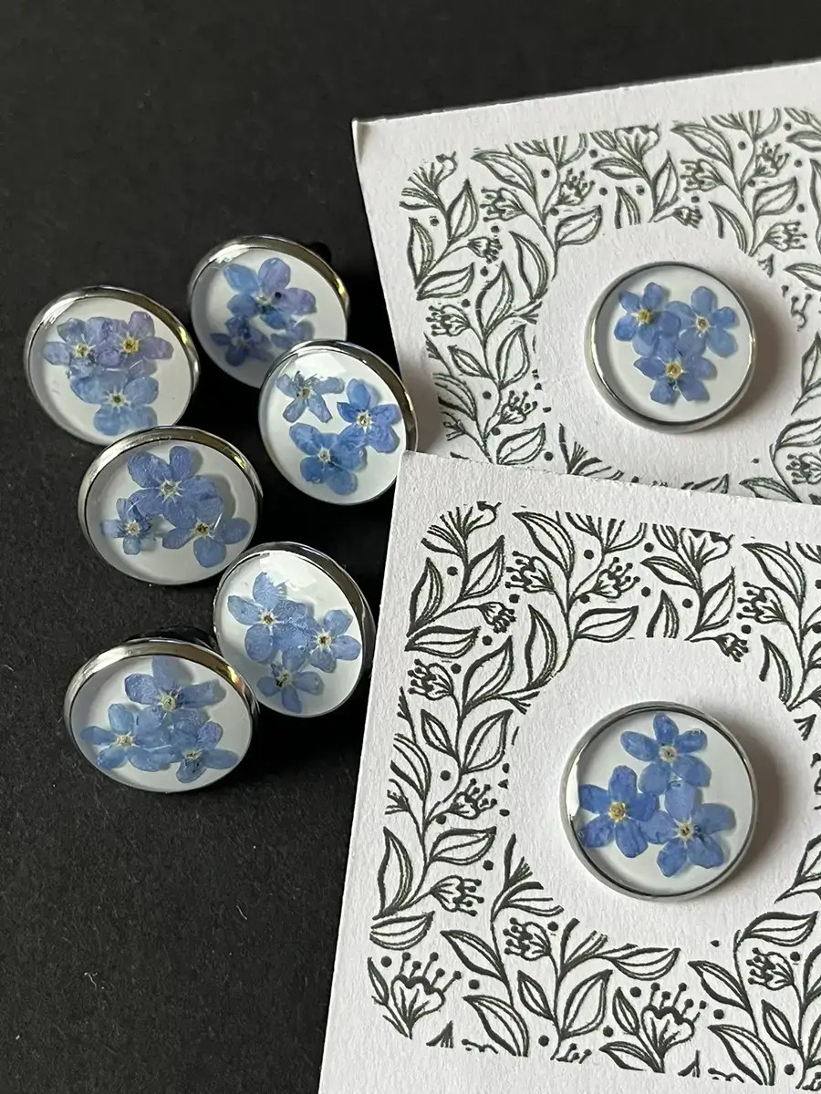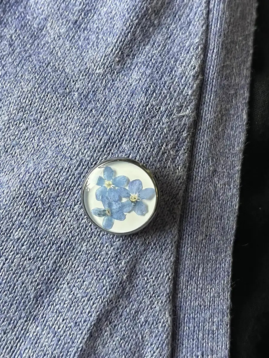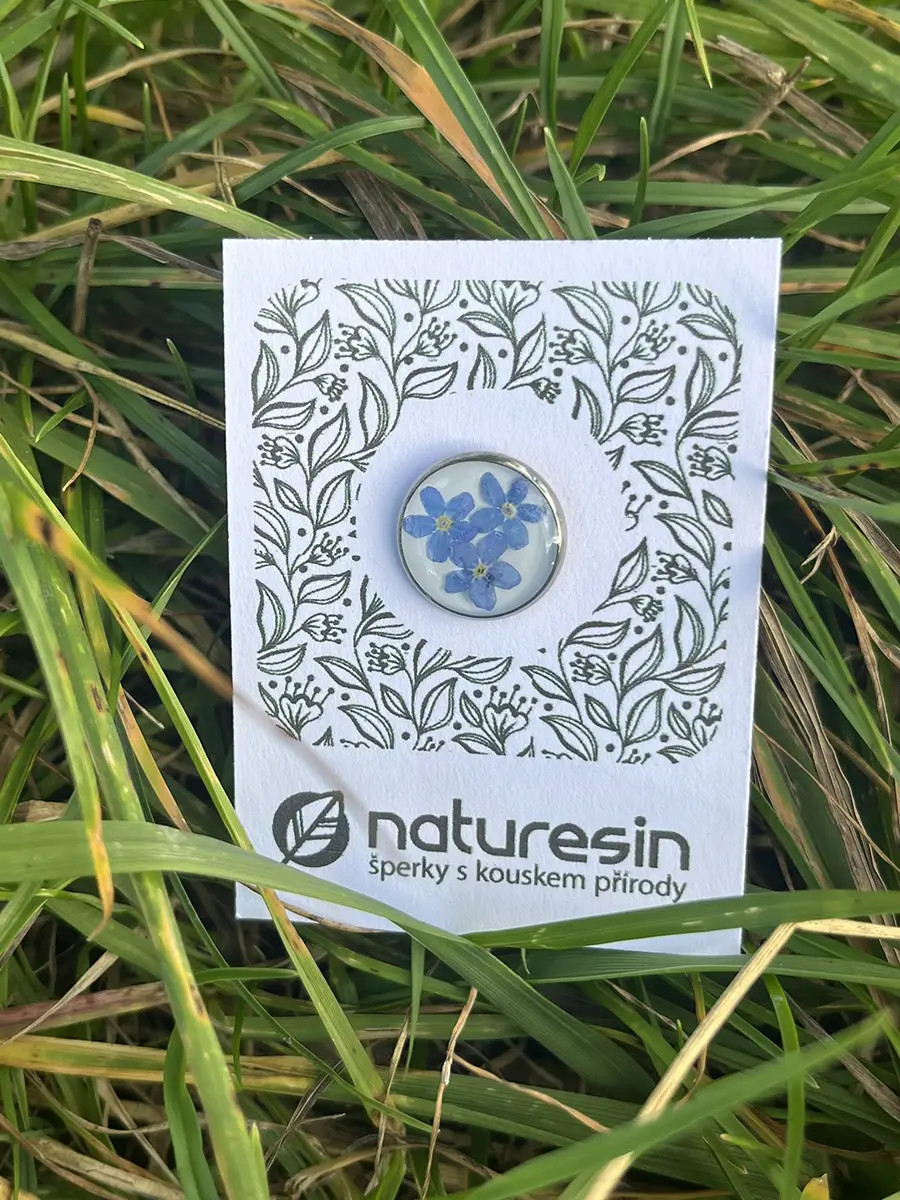 Romantická brož s pravými pomněnkami, které jsou zalité do pryskyřice a zachovávají si svou jemnou modrou barvu. Ideální doplněk pro ty, kteří chtějí nosit kousek přírody stále s sebou. Hodí se na sako, šaty i na batoh – drobný, ale působivý detail. Ruční práce, každý kus je originál.
