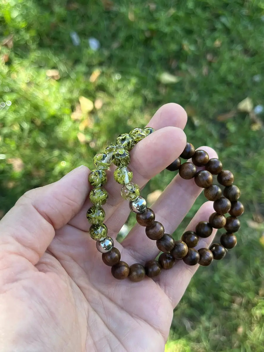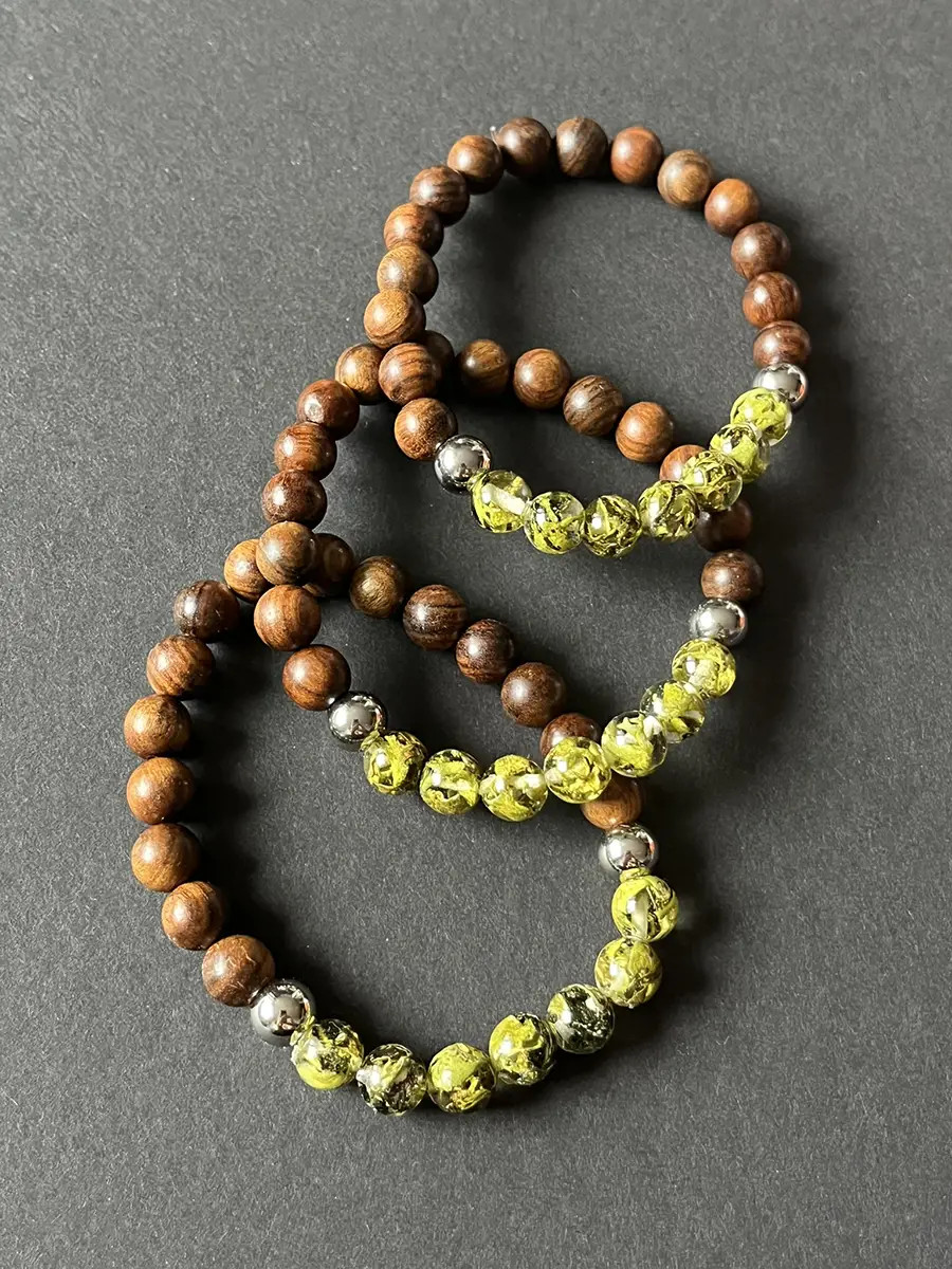 Kombinace dřevěných Palisandrových korálků, dvou lesklých kovových