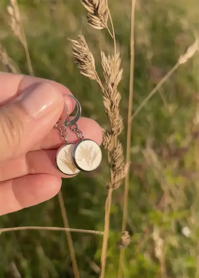 Minimalistické náušnice, ve kterých je uchovaný kousek přírody. Jemné stéblo trávy zalité v pryskyřici vytváří jedinečný a čistý design, díky němuž působí náušnice lehce a přirozeně. Každý pár je originál, protože příroda nikdy netvoří dvakrát stejně.