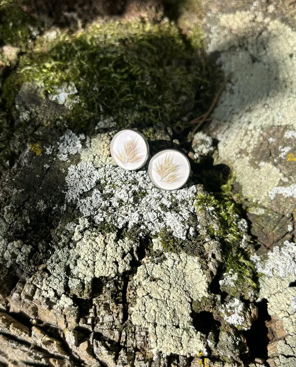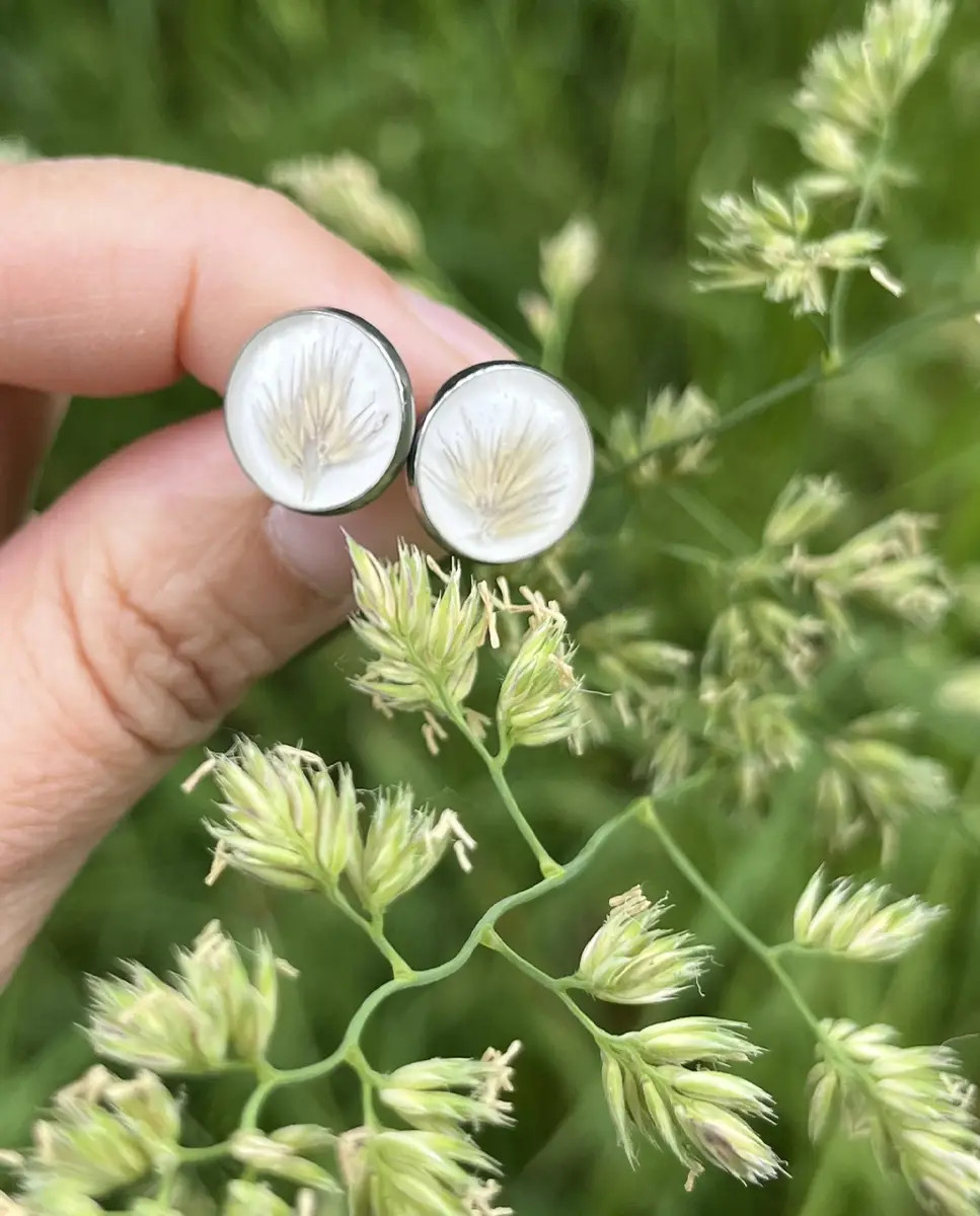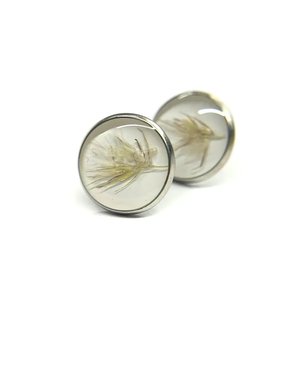 Kousek léta, který můžete nosit každý den. Tyto puzetové náušnice ukrývají v čiré pryskyřici skutečná stébla traviny, a tak v sobě nesou lehkost a klid přírody. Každý pár je originál – žádné dvě nejsou úplně stejné.